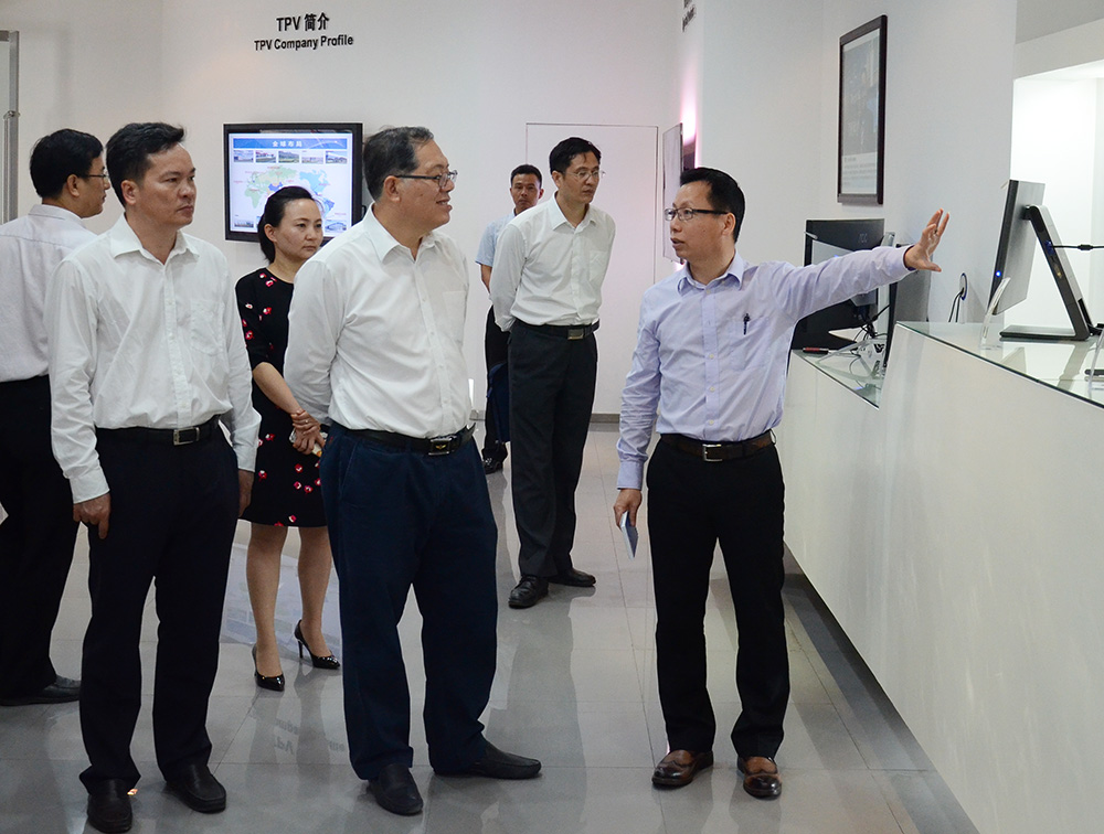 在中國(guó)電子北海產(chǎn)業(yè)園展示廳,北海工業(yè)園區(qū)管委會(huì)主任楊楨向陳剛副主席介紹了以中國(guó)電子北海產(chǎn)業(yè)園為基礎(chǔ)核心的北海電子信息產(chǎn)業(yè)發(fā)展情況,園區(qū)電子制造業(yè)板塊,重點(diǎn)龍頭企業(yè)發(fā)展概況。當(dāng)陳剛副主席得知2017年1—2月,中國(guó)電子北海產(chǎn)業(yè)園實(shí)現(xiàn)產(chǎn)值81.3億元,同比增長(zhǎng)6%;上繳稅收6844萬(wàn)元(其中新增服務(wù)業(yè)稅收3150萬(wàn)元),同比增長(zhǎng)523%;陳剛副主席贊揚(yáng)了中國(guó)電子入駐廣西,引領(lǐng)帶動(dòng)了電子信息產(chǎn)業(yè)的跨越式發(fā)展,為提升、優(yōu)化地方產(chǎn)業(yè)結(jié)構(gòu)做了重要的貢獻(xiàn)。陳剛副主席一行參觀調(diào)研了廣西電子信息產(chǎn)品質(zhì)檢中心,冠捷科技顯示器生產(chǎn)線,六禾電子SMT生產(chǎn)線。