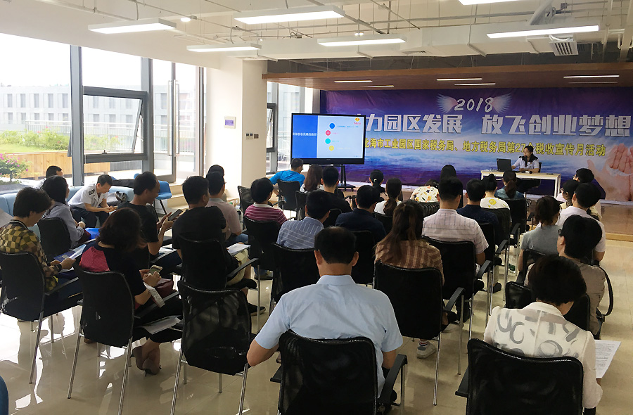 2018年4月25日,北海市工業(yè)園區(qū)國家稅務(wù)局、地方稅務(wù)局聯(lián)合在中國電子北部灣眾創(chuàng)空間舉辦了以“助力園區(qū)發(fā)展,放飛創(chuàng)業(yè)夢想”為主題的第27個(gè)稅收宣傳月活動(dòng),中國電子北部灣孵化器40余家企業(yè)代表參與了此次活動(dòng)。