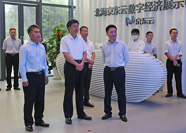 2020年6月11日下午,北海市委書(shū)記王乃學(xué)同欽州市委書(shū)記許永錁?biāo)暑I(lǐng)的欽州市黨政代表團(tuán)到中國(guó)電子北部灣信息港調(diào)研,參觀了北海京東云數(shù)字經(jīng)濟(jì)展示中心、京東網(wǎng)紅直播基地,聽(tīng)取企業(yè)負(fù)責(zé)人介紹生產(chǎn)經(jīng)營(yíng)等方面的情況。